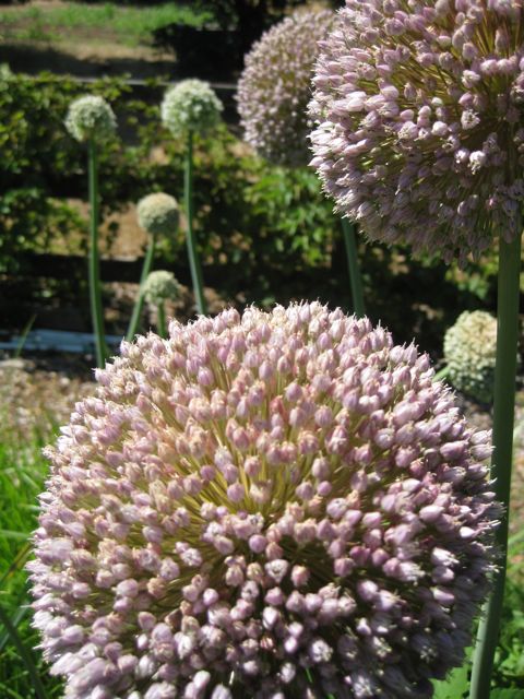 The visitor to our garden noticed another use for those flowering onions. "Are these edible?", she asked. It should be mentioned that she said this as she was munching on a few of the florets of the onion flower.